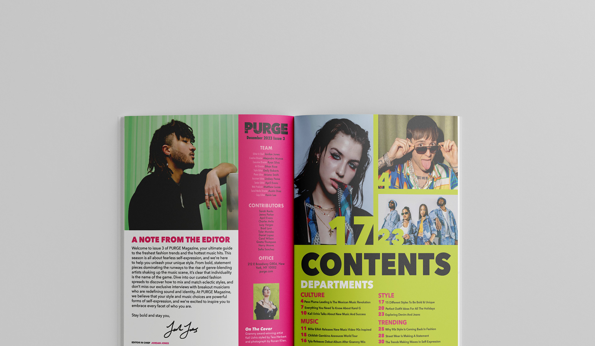 Purge magazine is about the latest fashion trends and music hits. Crafted for young adults who thrive on expressing themselves through the powerful mediums of music and fashion. It’s more than just a magazine; it’s a platform that reflects the dynamic spirit of youth culture today, pushing boundaries and setting trends.